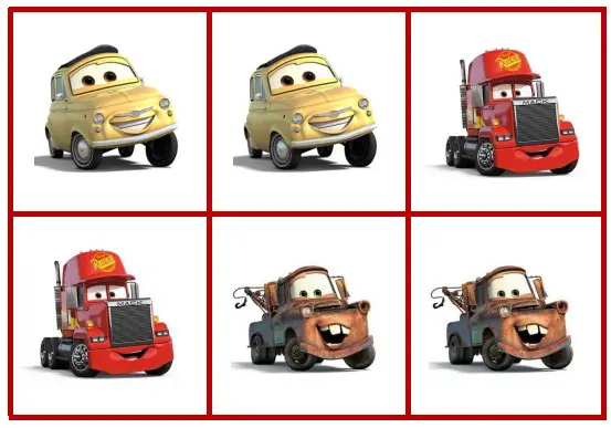 - Memory Cars : Testez leur mémoire en retrouvant les paires de personnages.