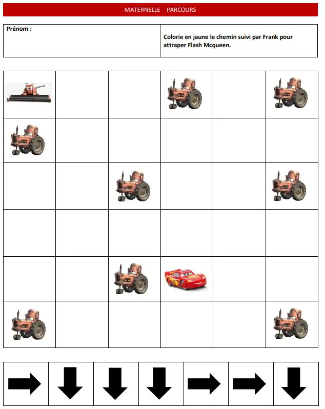 - Parcours Cars : Encouragez leur précision en traçant et coloriant les chemins de course de Frank et Flash McQueen.
