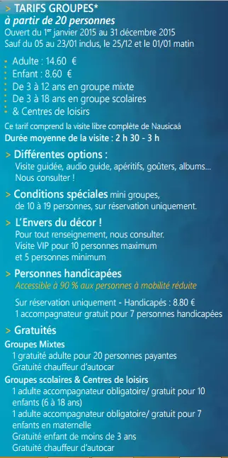 Tarifs pour les groupes et centres de loisirs :